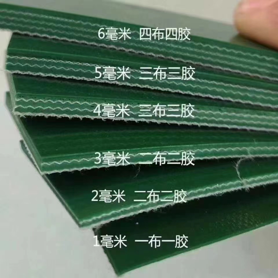五、根據PVC輸送帶產品織物層次可分為:一布一膠、二布一膠、一布二膠、二布二膠、二布三膠、三布三膠、三布四膠、四布四膠、四布五膠、五布五膠等。