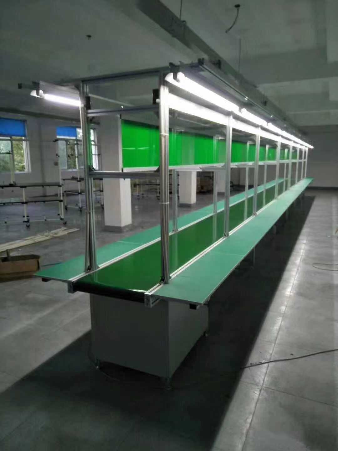 皮帶線廣泛應用于家電、電子、電器、機械、煙草、注塑、郵電、印刷、食品等各行各業,物件的組裝、檢測、調試、包裝及運輸等。線體輸送可根據工藝要求選用:普通連續運行、節拍運行、變速運行等多種控制方式;線體因地制宜選用:直線、彎道、斜坡等線體形式。